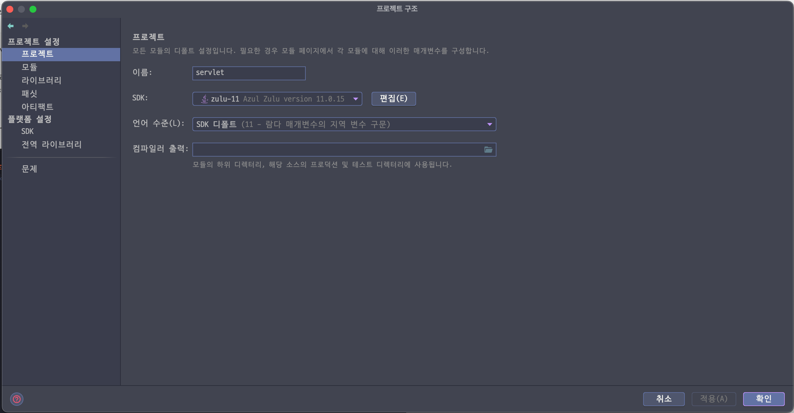 일단 SDK와 언어수준을 원하는 수준으로 맞추어 줍니다. 저는 회사 환경에선 Zulu7에 맞추어 주었습니다.