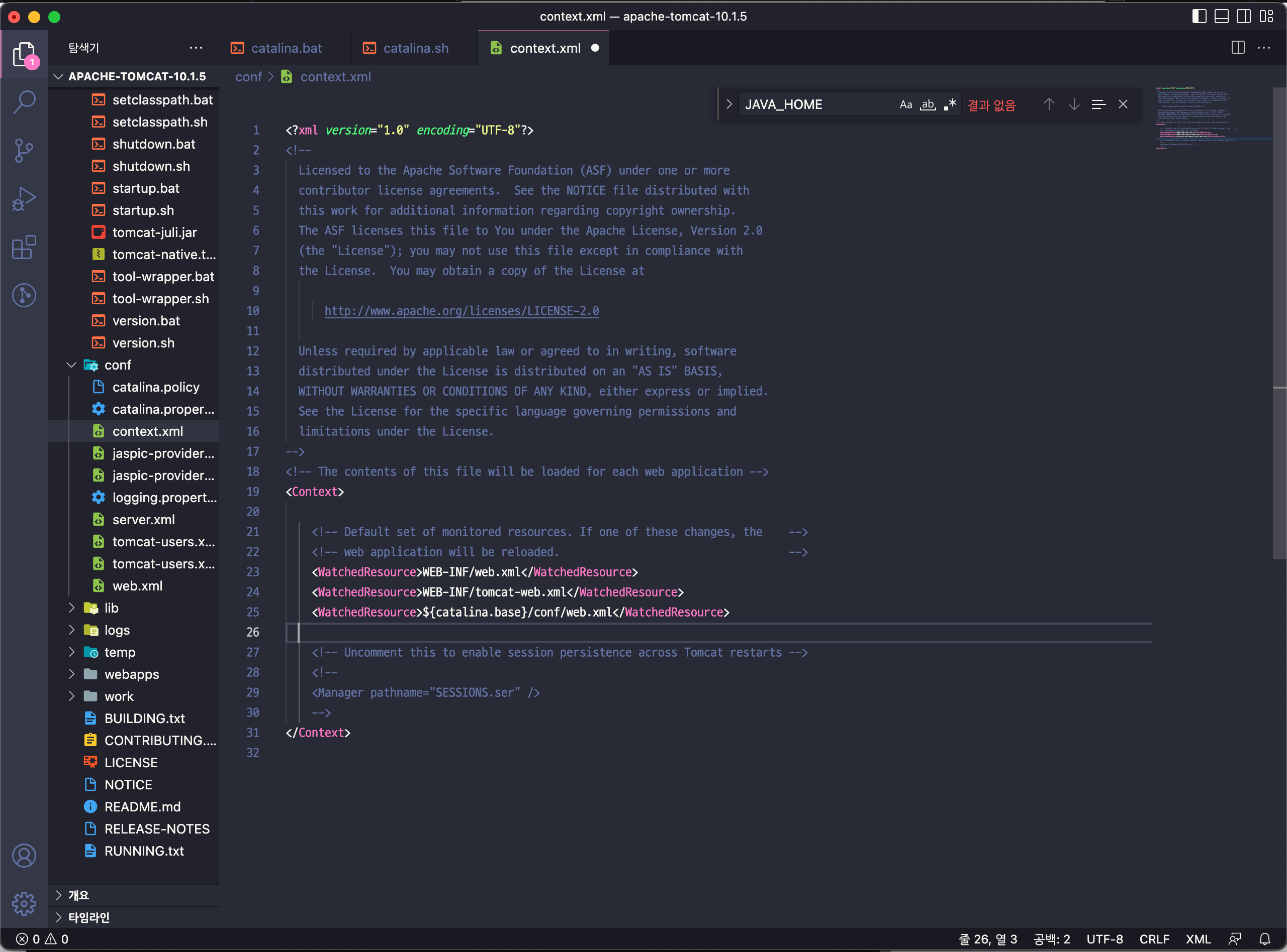 그리고 conf/context.xml을 열어보면 다음처럼 되어있습니다.