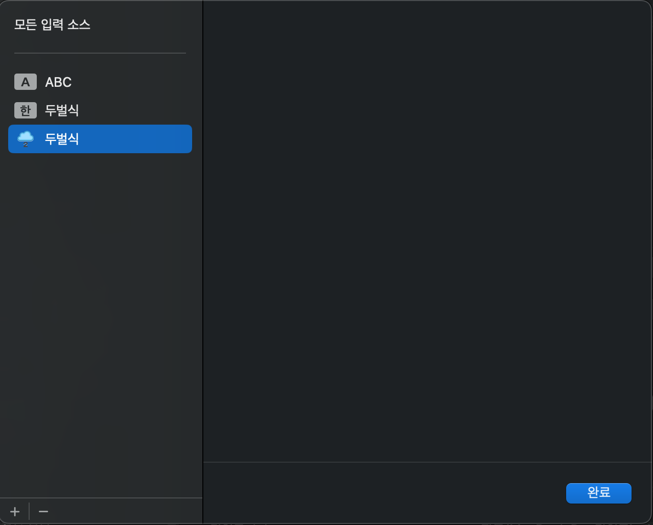 이전 두벌식 입력 소스는 - 버튼으로 삭제해주고 테스트 해봅시다.