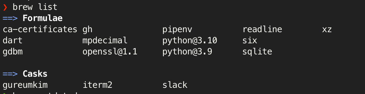 설치가 완료를 brew list를 통해 확인해봅니다.