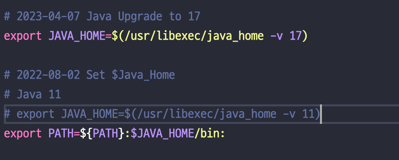 스크립트를 작성해서 11 버전을 사용할지 17버전을 사용할지 명령어를 만들어서 바꿀 수도 있는데, 굳이 사용할 일은 없을 것 같습니다.