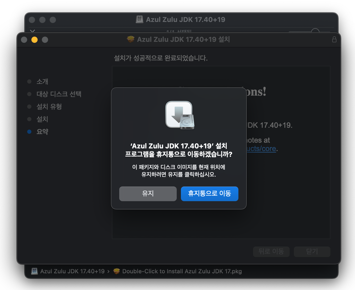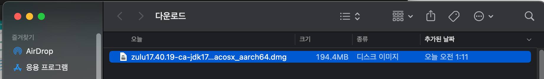 이상 dmg 파일을 이용해서 Zulu java 17 버전을 Mac m1 환경에서 설치하는 법을 정리해보았습니다.
