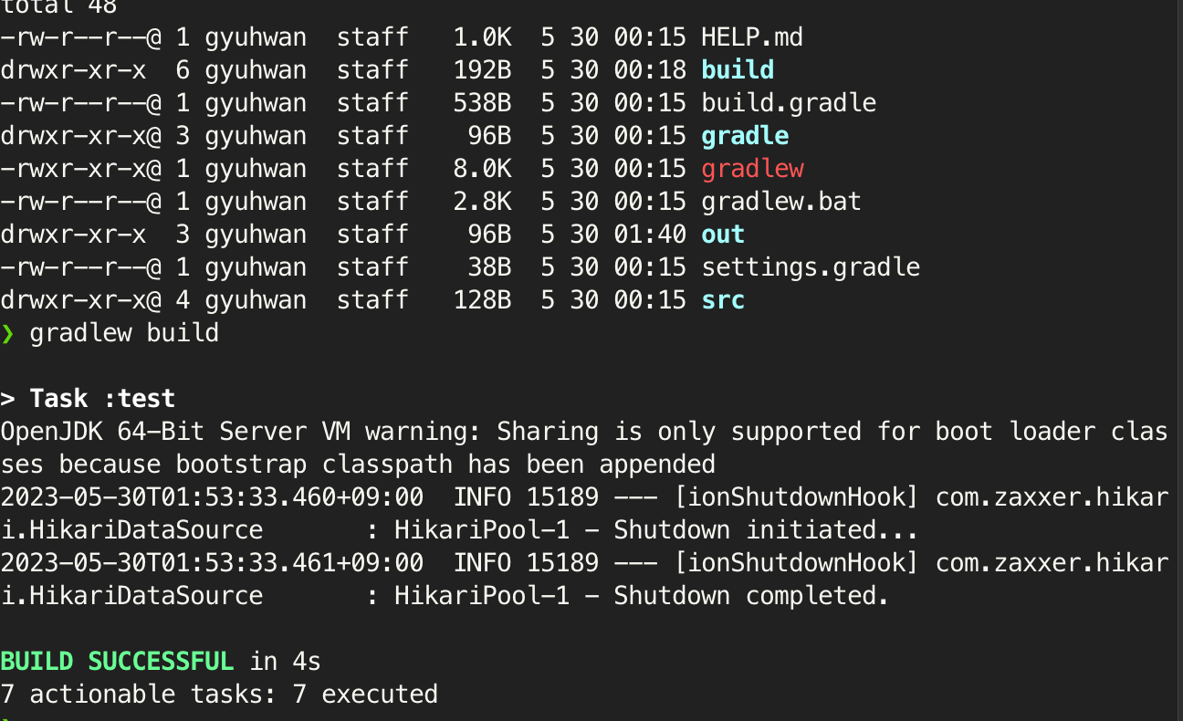 작업 결과는 bulid/libs 폴더에 생깁니다.