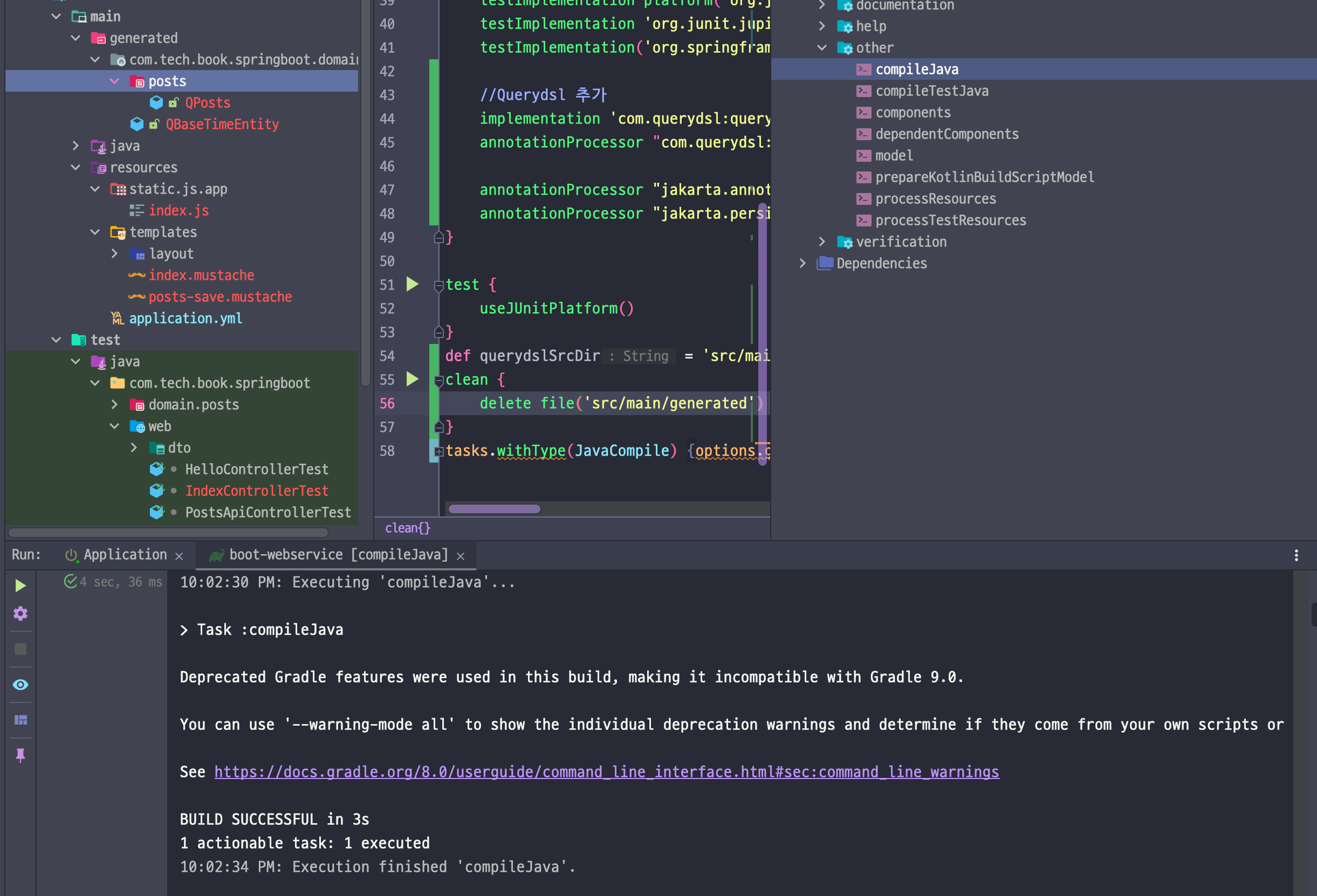 위 설정을 적용하면, gradle을 통해 clean 할 때 Q타입이 지워지고, JavaCompile을 하면서 Q타입을 새로 만듭니다.