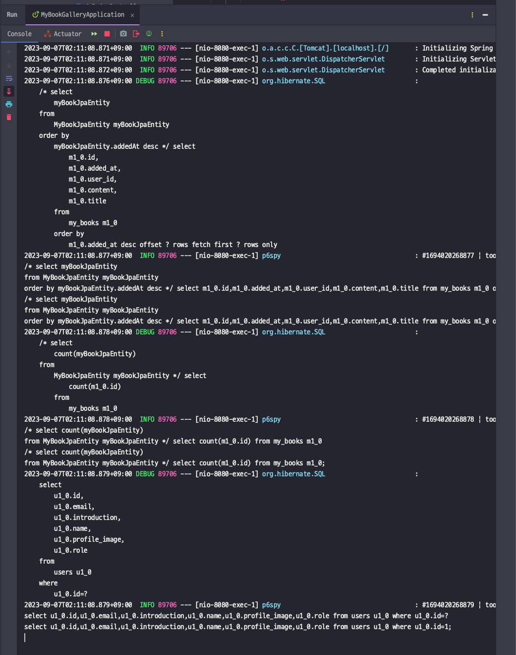 gradle을 새로고침 해주고, 스프링 부트를 다시 실행시키면 다음과 같이 Q-type들이 만들어지게 됩니다.