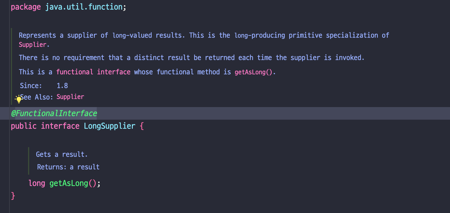 LongSupplier는 아래와 같이 함수형 인터페이스로 되어있습니다.