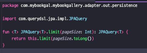 위와 같이 JPAQuery 수신 객체가 limit 함수에 대해 내부적으로 toLong()을 호출하도록 하여, toLong() 메서드를 반복적으로 사용하지 않도록 작성해 보았습니다.
